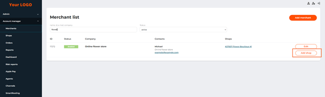 In case of a successful shop registration, you will see a new shop in the list of shop accounts.