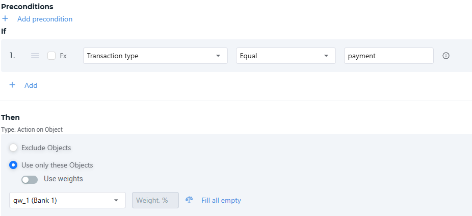 If you need to set up the priority of gateways, you need to create a flow of the Object type with the Sequential method, then add rules to this flow for each available gateway (you can use a simple condition, for example, if the transaction type is payment, use gateway Bank 1. You can use more complex conditions if necessary). You then need to rearrange the rules in the flow according to the gateway priority.