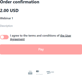 The Pay button is deactivated unless the customer clicks the toggle, confirming that they accept the User Agreement. |
