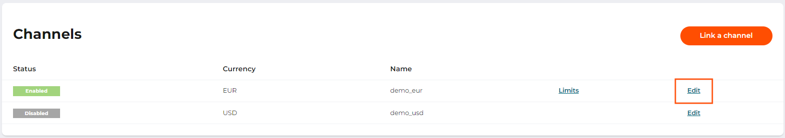 To activate or deactivate a payout channel, follow the steps below: