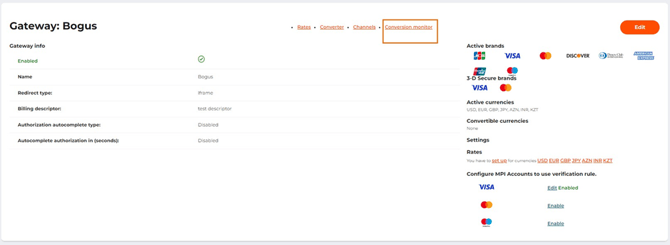 The Conversion monitor tab on the payment gateway settings page