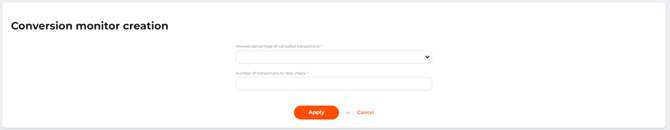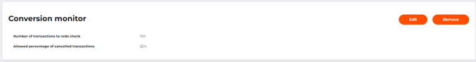 If the conversion monitor service was set up earlier, the page will show the number of transactions to check and the allowed percentage of unsuccessful transactions. Click Edit to edit the settings, or Delete to disable the monitor service.
