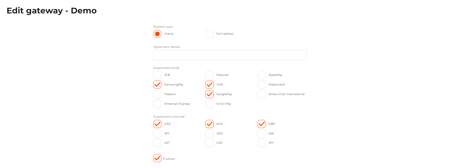 Click Edit in the line of the acquirer who provided the required payment gateway.