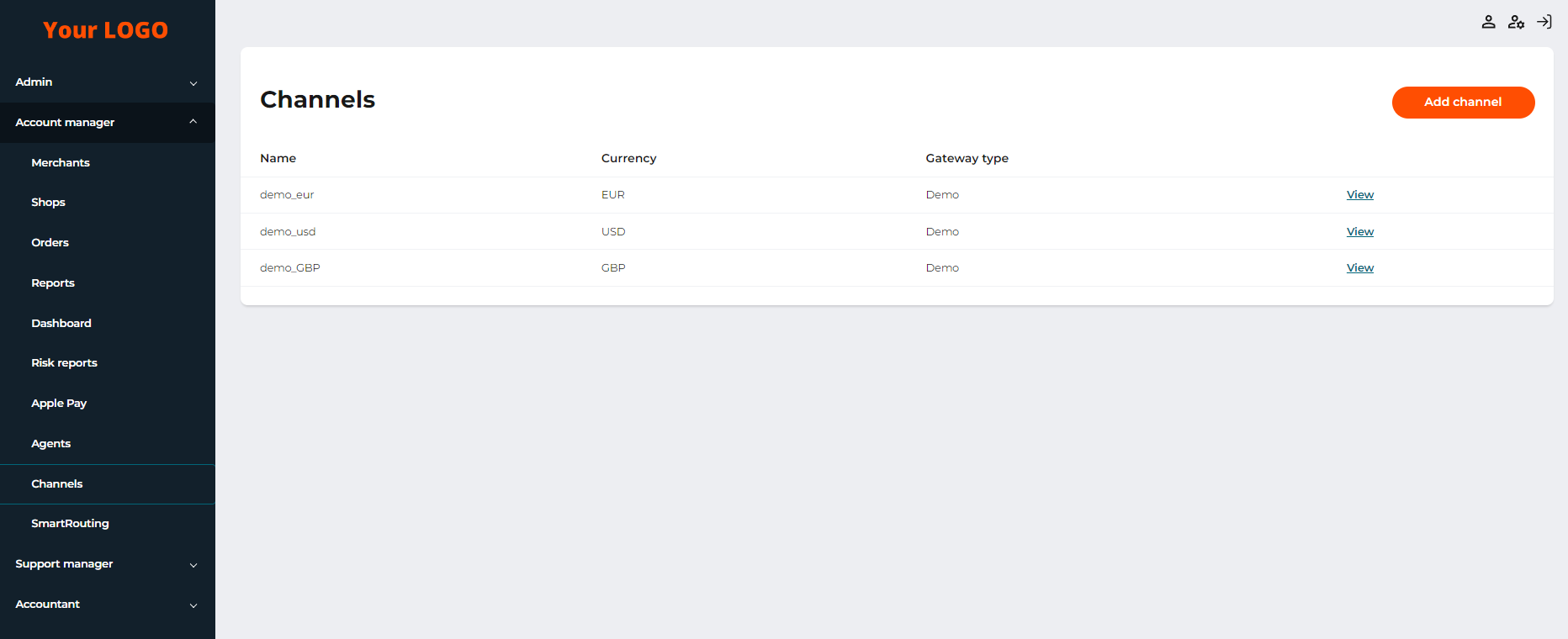 Gateway type: the name of the acquirer that provided the payment gateway and will process payout transactions through this channel;