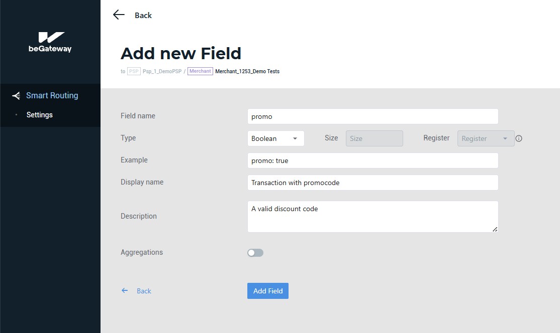 To save the field settings, click on Add Field.