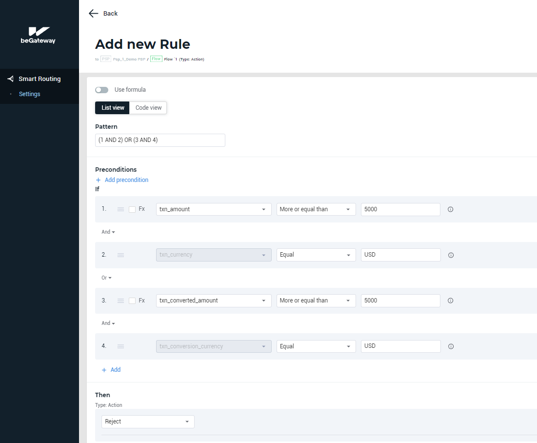 Example 1: A rule to reject all transactions over USD 5000.00