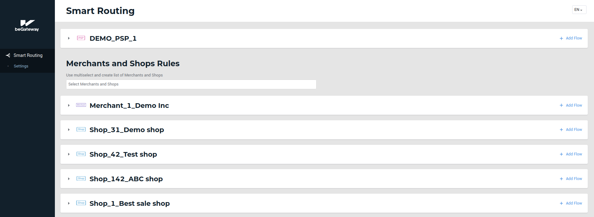 Please, refer to beGateway: PSP back office manual on how to enable the Smart Routing service for an account.