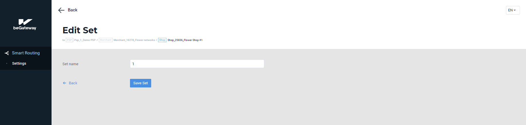 Update the value in the Set name field.