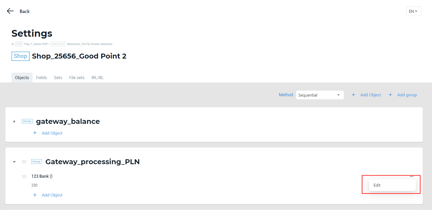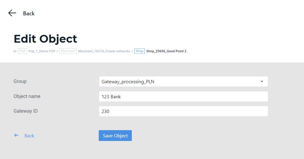 Upon editing, you can change the group to which the object belongs, and the object ID, if needed.