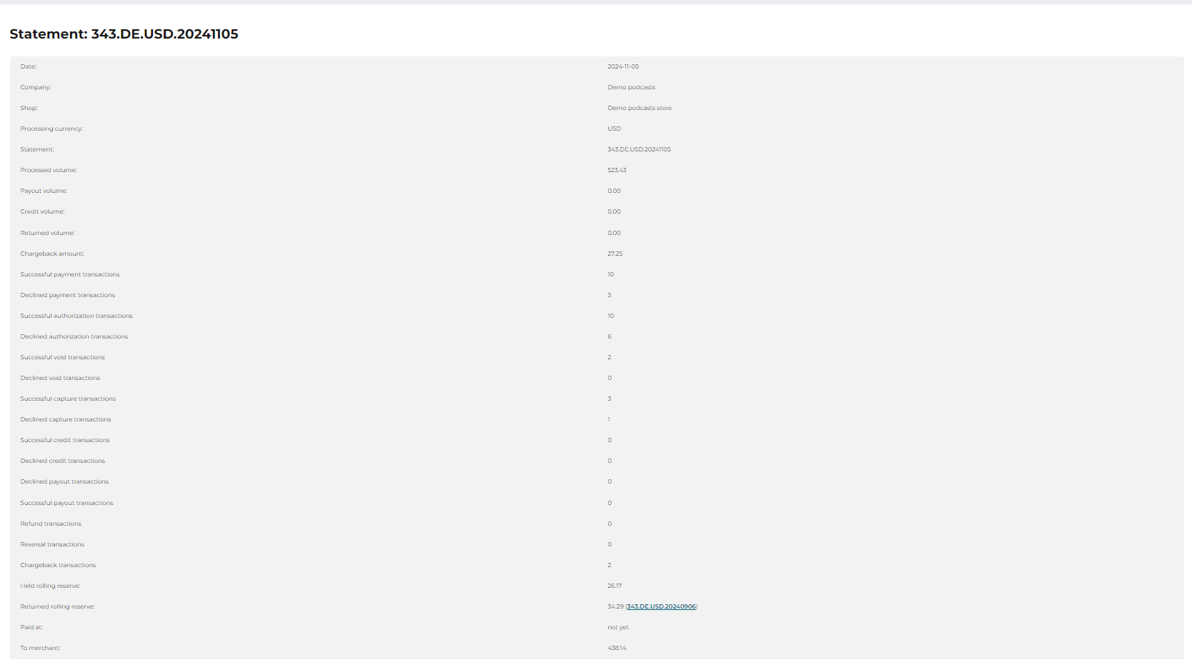 The financial statement ID when the returned rolling reserve was first held is shown in brackets. |