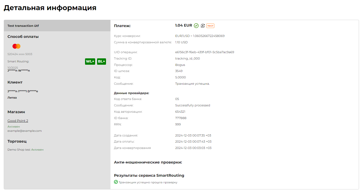 Сконвертированная сумма будет отображена торговцу в автоматическом уведомлении по транзакции, а также будет доступна в отчете и на странице детальной информации о транзакции.