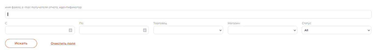 Поля для частичного или полного ввода имени получателя отчета, имя загруженного файла с параметрами массовых выплат, идентификатора массовых выплат. |