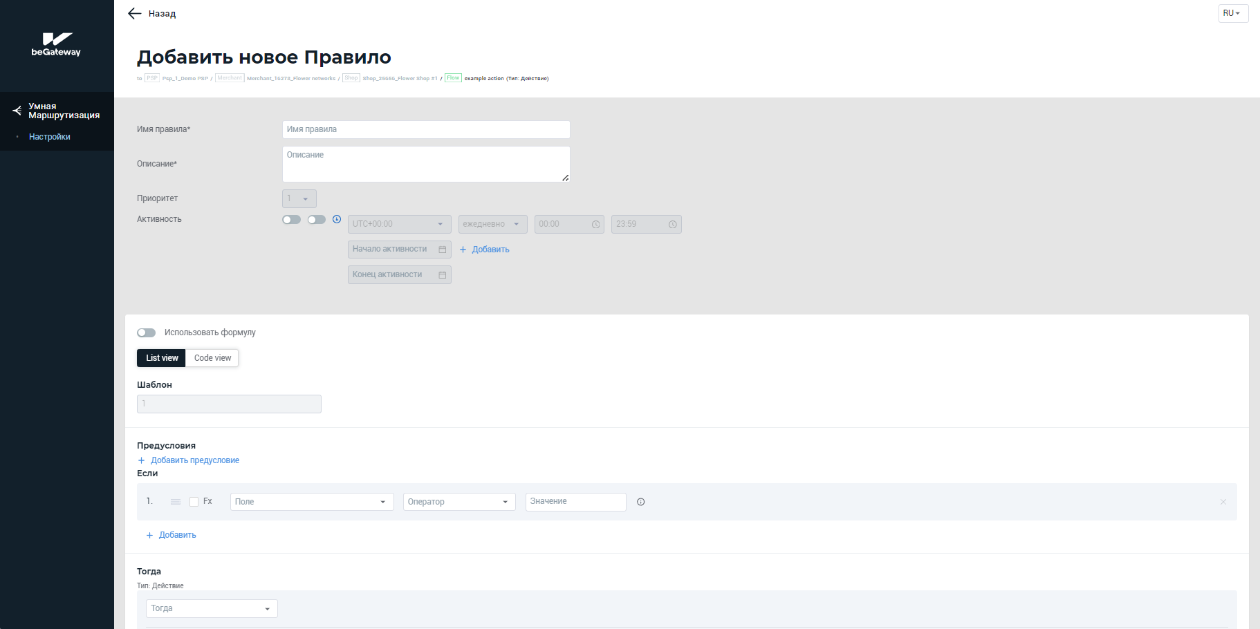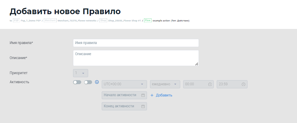 Часовой пояс, согласно которому будут применяться даты и время начала и конца активности правила. По умолчанию, UTC + 00:00 |