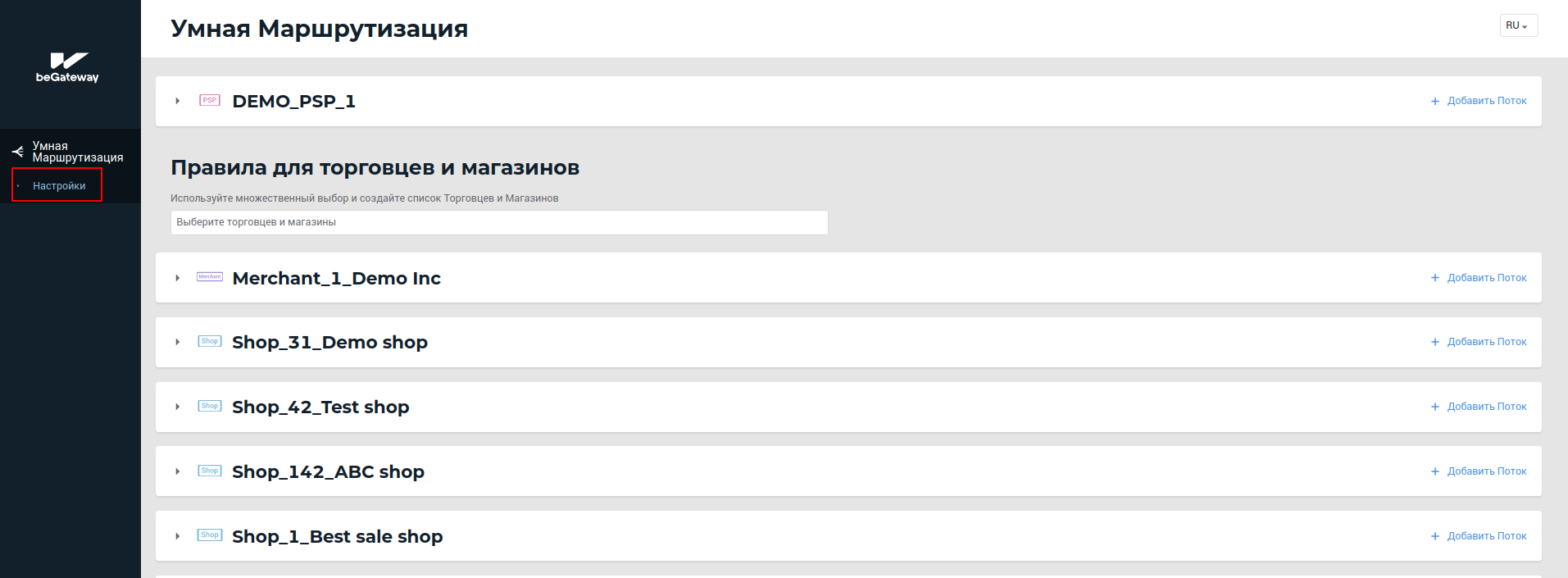 Пункт меню “Настройки” сервиса Умная Маршрутизация