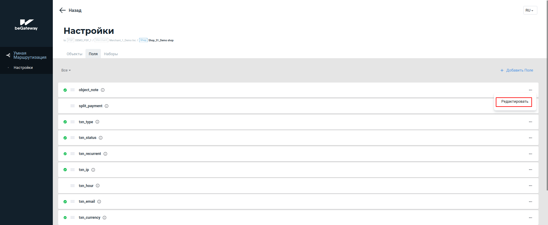 Для редактирования существующих полей выполните следующие действия: