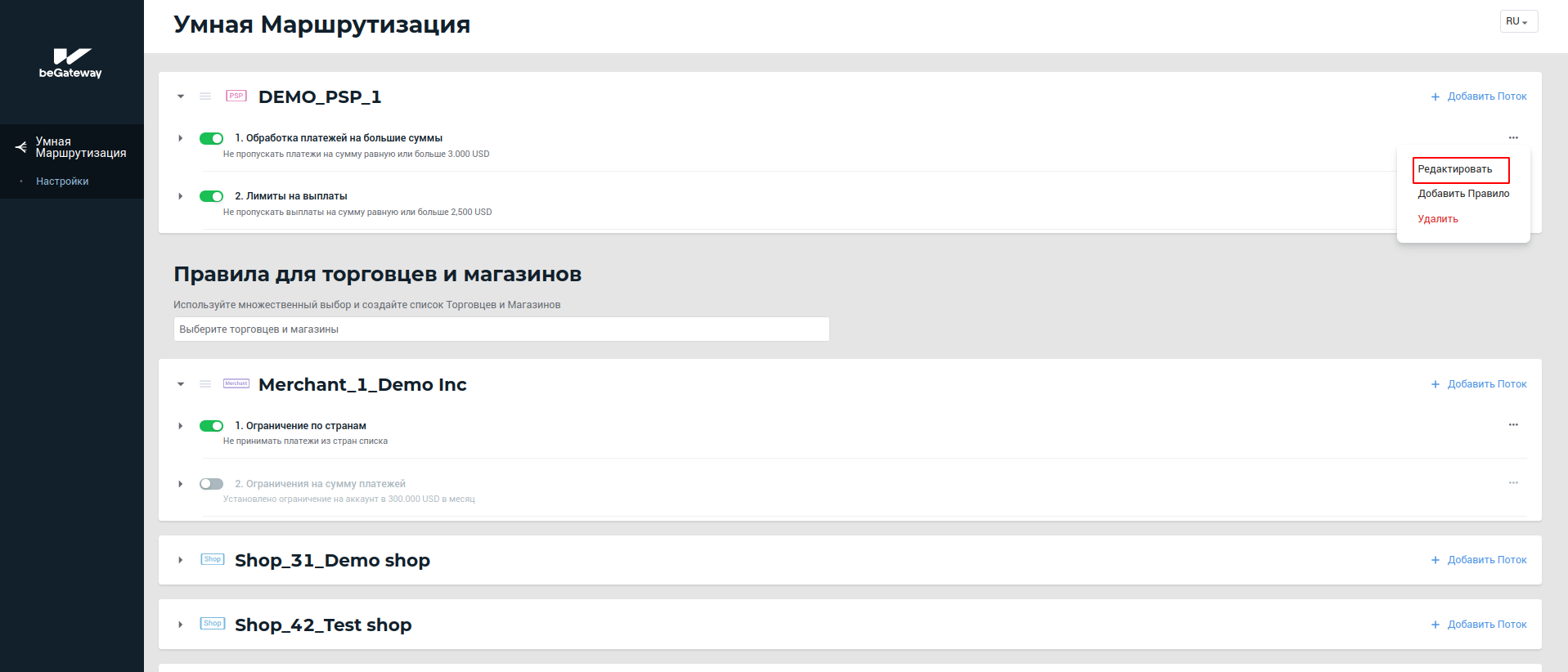 1. Перейдите на вкладку Умная маршрутизация.2. Выполните одно из двух действий: